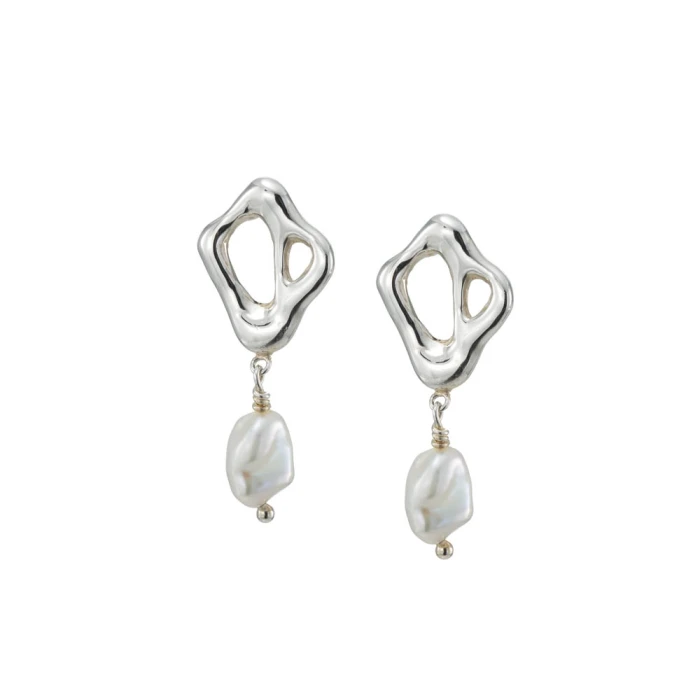The Aphrodite earrings silver are handmade and their sculptural, abstract form captures the connection between the sea and the goddess Aphrodite. The airy movement of the design embraces the simplicity of nature, while the Keshi pearl hanging at the end is the ultimate ode to the goddess’s beauty and grace. With its every movement, a sense of mystery and eternal allure is revealed, as if touching the ancient harmony of the sea and the divine.