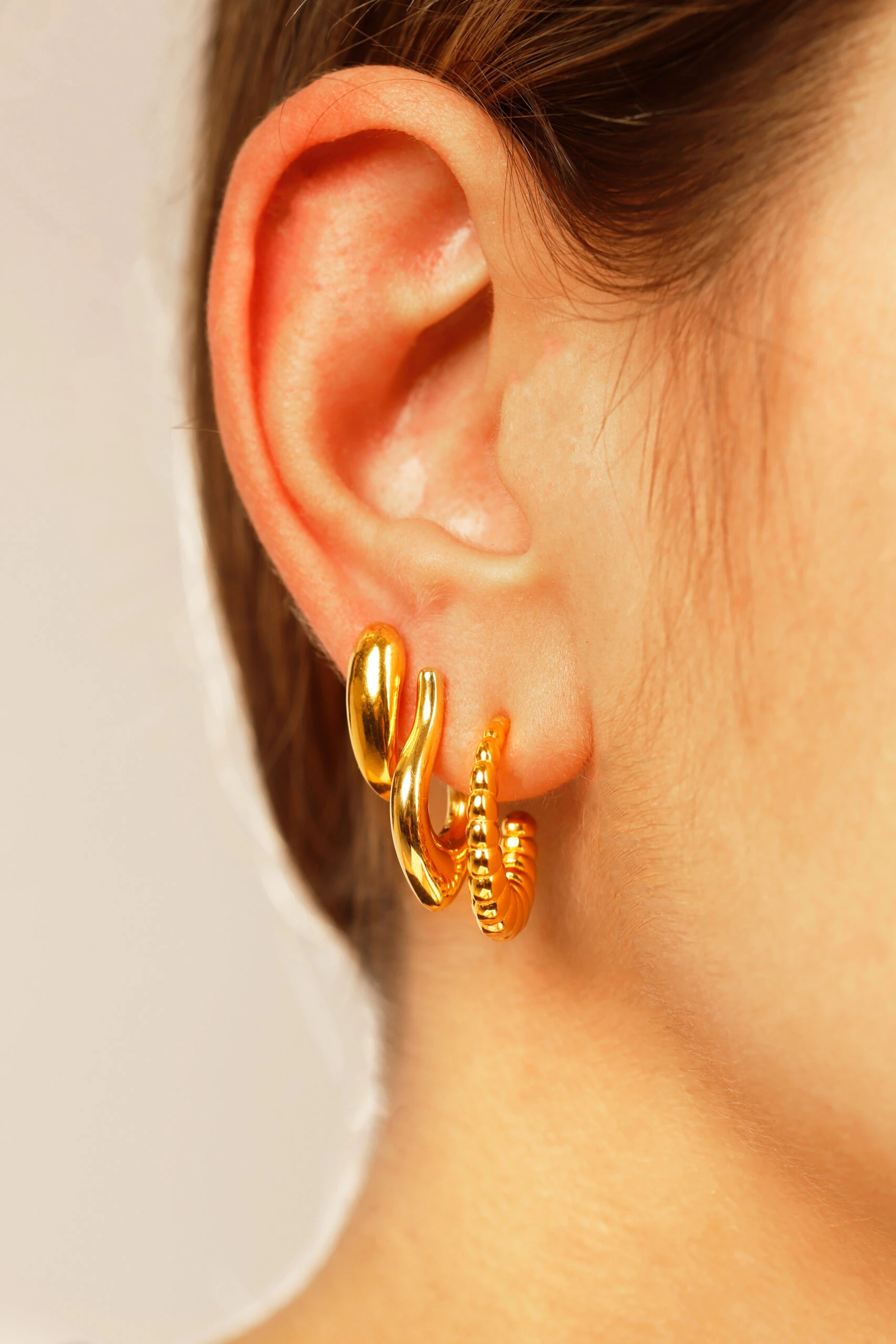 The Hook earrings gold are handcrafted, bringing the intensity of a tribal aesthetic, with curves that wrap around the ear. A bold yet refined choice, adding strength and uniqueness.