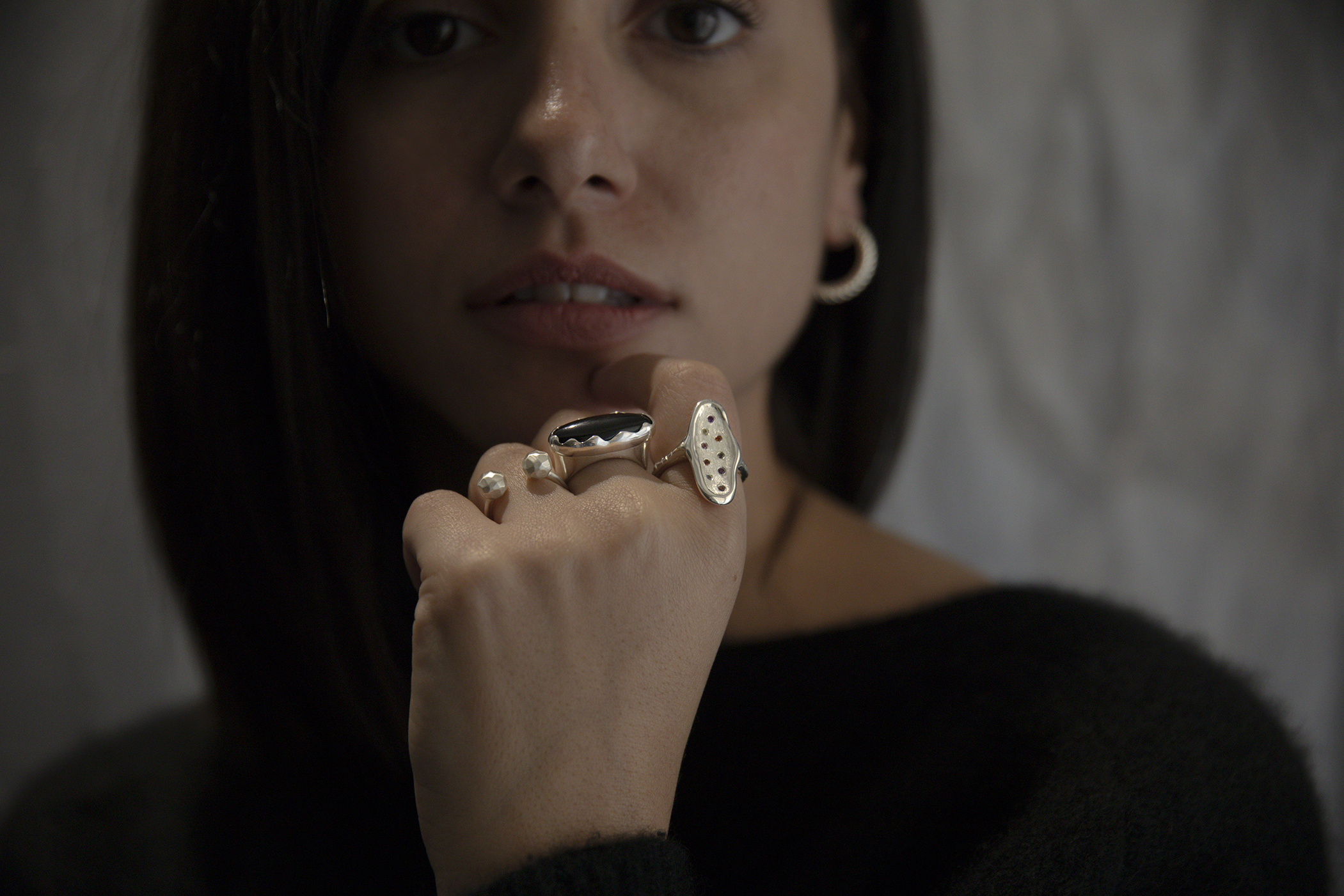 The Ring of Eternity embodies the philosophy of the Fragments of the Infinite collection, where imperfection and the power of creation reflect natural beauty. Each hammered surface of the jewelry captures the rhythm of nature, while the purity of the silver symbolizes resilience and the eternal transformation of natural elements.